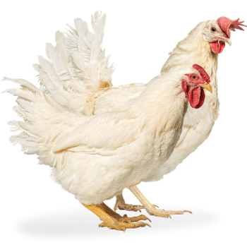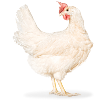 Яйценосный гибрид с белыми перьями, дающий яйца кремового цвета.